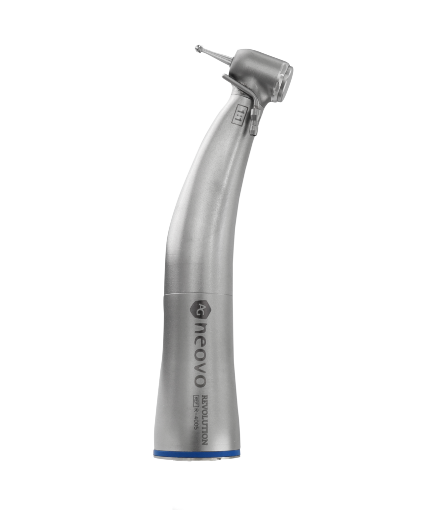 AG Neovo Healthcare contra-angle dental handpiece offers high torque with a compact, light-weight, and durable design, which offers an exceptional balanced cutting performance with low noise for each procedure. Ergonomic and slip-free body design provides dentists with a better grip and reduces hand fatigue for long hours work. The Revolution Series features high quality of stainless steel non-groove craftsmanship, making it easy to clean and sterilize to prevent cross-contamination.
